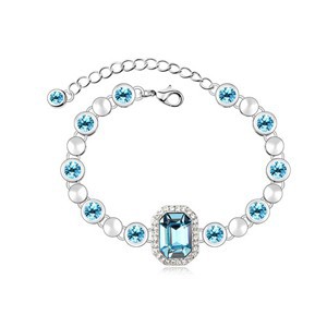 Luxusní náramek Swarovski bude chloubou ve sbírce šperků každé ženy. Módní doplněk tvoří výrazný modrý křišťál Swarovski, lemovaný drobnými kamínky, které dodají luxusnímu náramku ještě vice krásy.