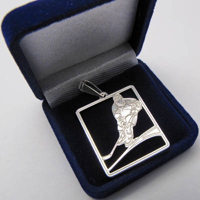 Stříbrný přívěsek hokejista s detailně propracovanou rytinou postavy patří k originálním sportovním šperkům. Přívěsek hokejisty potěší jistě každého sportovce nebo fanouška, který tomuto sportu propadl.